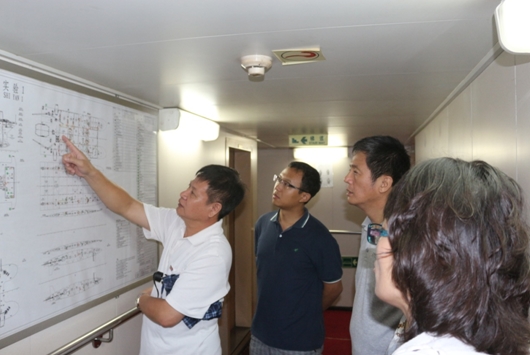 南海海洋研究所船舶處處長(zhǎng)蔡小陽(yáng)和“實(shí)驗(yàn)1”號(hào)船長(zhǎng)向三亞深海所科研人員詳細(xì)介紹了“實(shí)驗(yàn)1”號(hào)的船舶結(jié)構(gòu)、建造過程、船載儀器設(shè)備以及各項(xiàng)參數(shù)性能。同時(shí),大家針對(duì)船舶動(dòng)力系統(tǒng)、減震降噪功能和綜合科學(xué)考察能力提出問題,進(jìn)行了詳細(xì)咨詢了解。