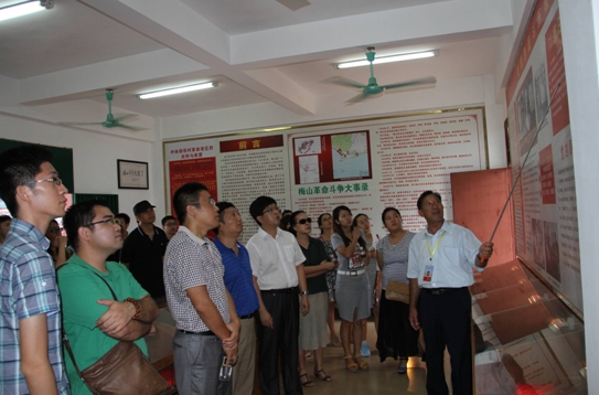 在梅山革命使館,一幅幅梅山革命斗爭中的英雄照片,一件件抗戰時期的物品呈現在大家的眼前,聽取著現場講解員介紹這些英雄背后的故事,在場的每一個人仿佛都置身在那風起云涌、波瀾壯闊的革命斗爭之中,一股股紅色的暖流在心中涌動。走出革命使館,大家又陸續參觀了廉政展館、珍藏館、紅色詩廊、瓊崖二十三年紅旗不倒選編展館、雙百英雄展廳等。