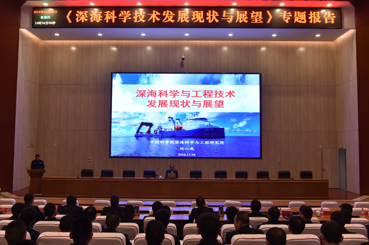 2016年11月24日,深海所首席顧問(wèn)劉心成受邀赴火箭軍工程大學(xué)作題為《深海科學(xué)技術(shù)發(fā)展現(xiàn)狀與展望》的報(bào)告。