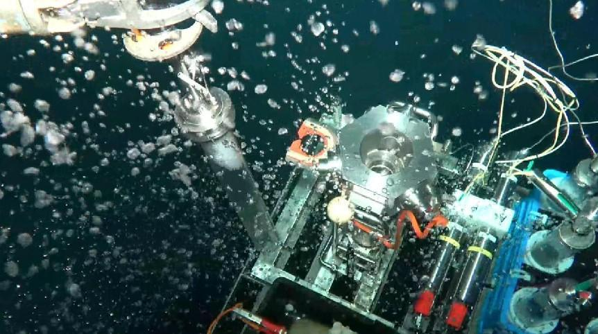 該航次在完成深海原位實(shí)驗(yàn)室海試任務(wù)的同時(shí),通過“深海勇士”號(hào)在南海冷泉區(qū)開展了冷泉流體滲漏的生態(tài)環(huán)境效應(yīng)科考,獲取了“海馬”冷泉區(qū)以及其東北方向新發(fā)現(xiàn)的2處活動(dòng)冷泉區(qū)一批重要的流體、沉積物和生物樣本,并通過深海原位實(shí)驗(yàn)室對(duì)其中的一處滲漏口進(jìn)行了流體組分、微生物群落等的72小時(shí)原位觀測。