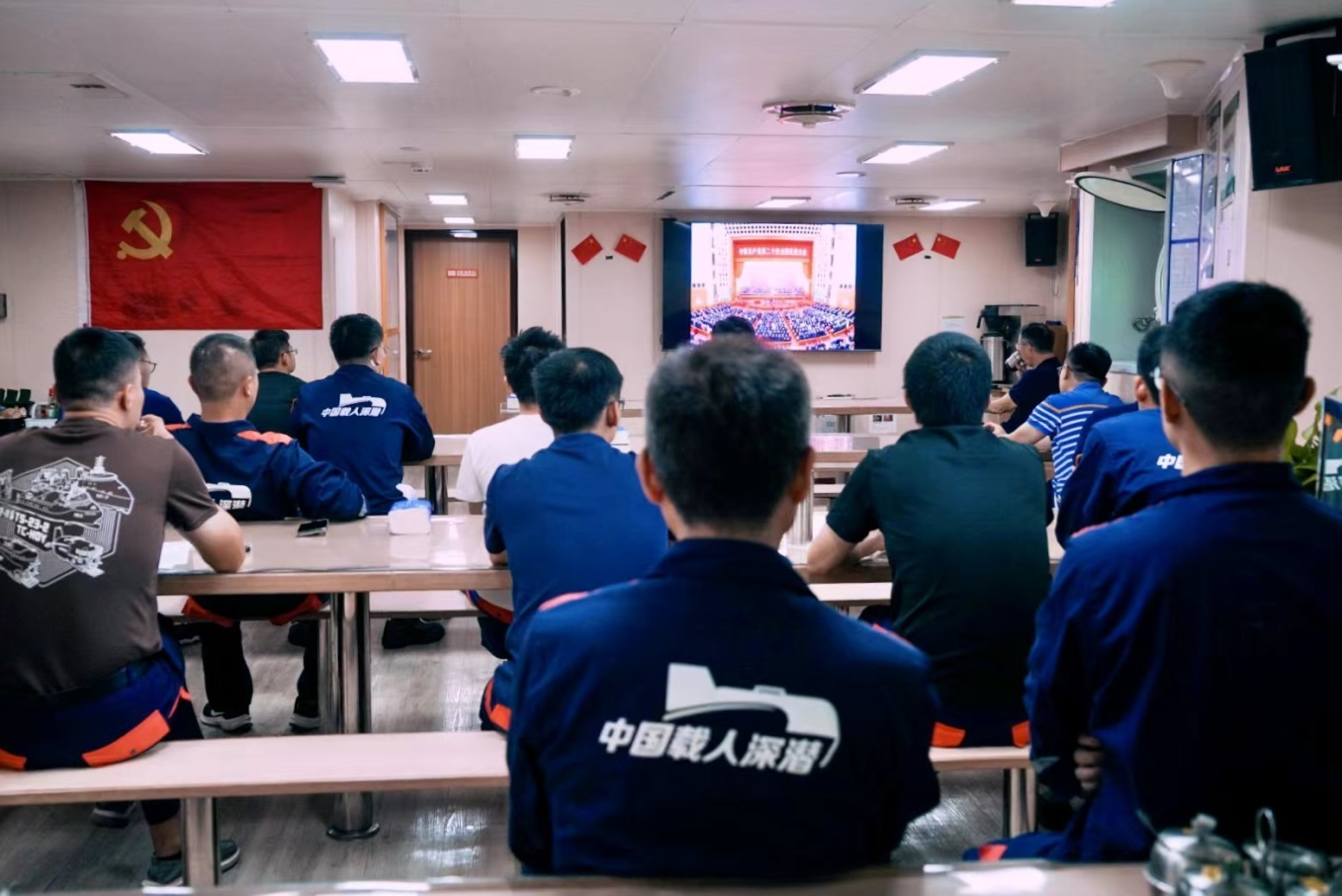 新思想引領新時代,新使命開啟新征程。1016日上午10時,中國共產黨第二十次全國代表大會在北京人民大會堂開幕。此次會議是在全黨全國各族人民邁上全面建設社會主義現代化國家新征程、向第二個百年奮斗目標進軍的關鍵時刻召開的一次十分重要的大會,萬眾聚焦,舉世矚目。深海所組織黨員、群眾分別在科研園區報告廳、“探索一號”、“探索二號”科考船集中收看黨的二十大開幕會盛況,認真聆聽習近平總書記代表第十九屆中央委員會向黨的二十大作的報告。